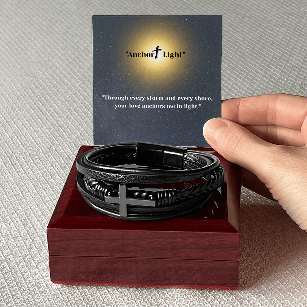 “Anchor + Light” Bracelet – Inspirational Gift for Him | Vegan Leather Bracelet with Message Card – Stardust Cove