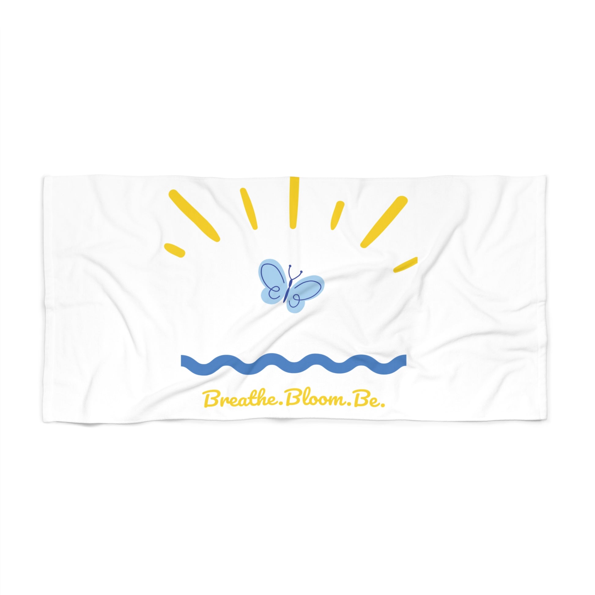 Wrap yourself in sunshine, serenity, and self-love with our Breathe. Bloom. Be. Beach Towel. Featuring a peaceful blue butterfly, radiant sun rays, and gentle waves, this uplifting design brings both calm and coastal charm to your summer adventures. Whether you're soaking up rays, meditating on the sand, or catching waves, this towel reminds you to stay grounded and glow from within.