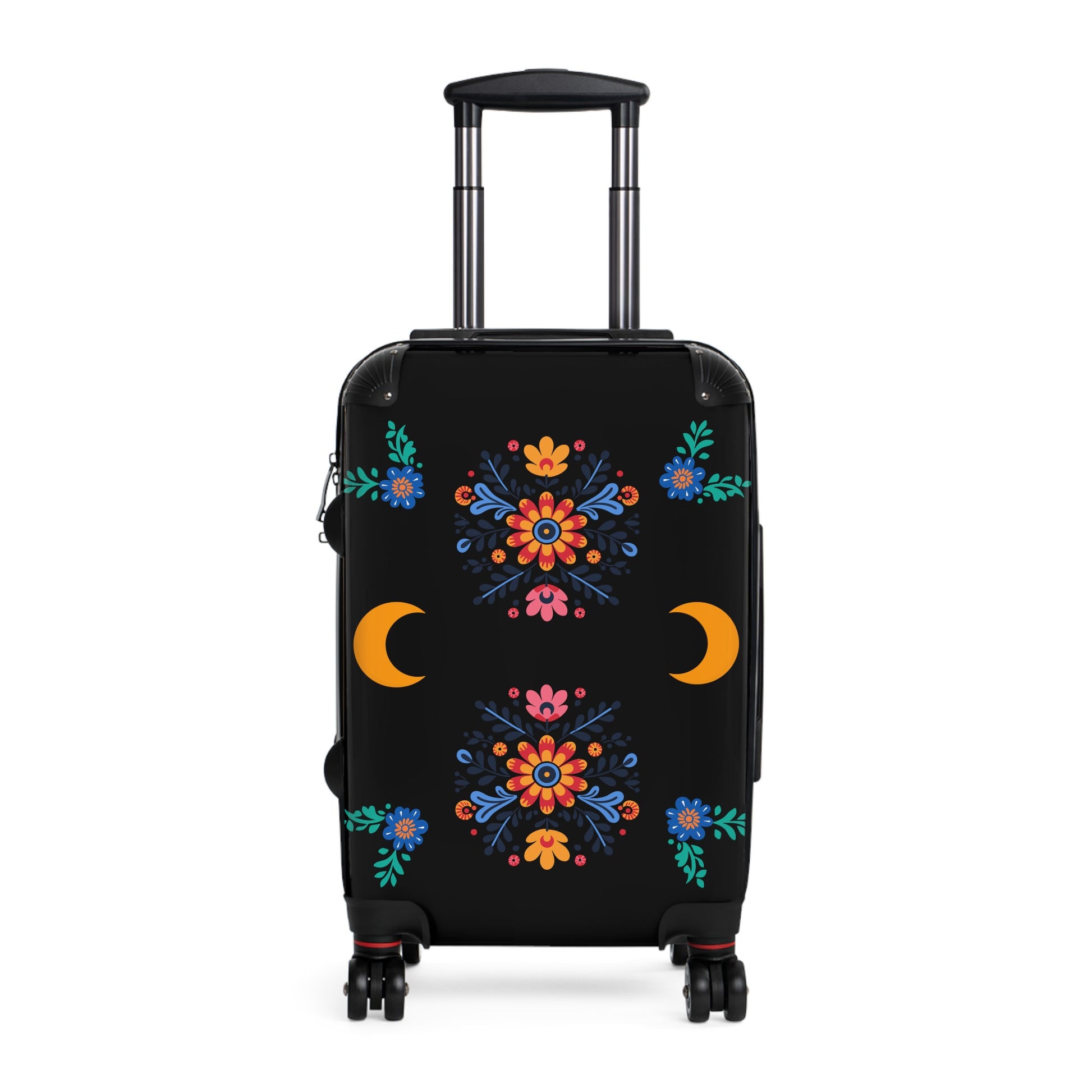 Celestial Bloom Suitcase – Boho Floral Moon Phase Luggage