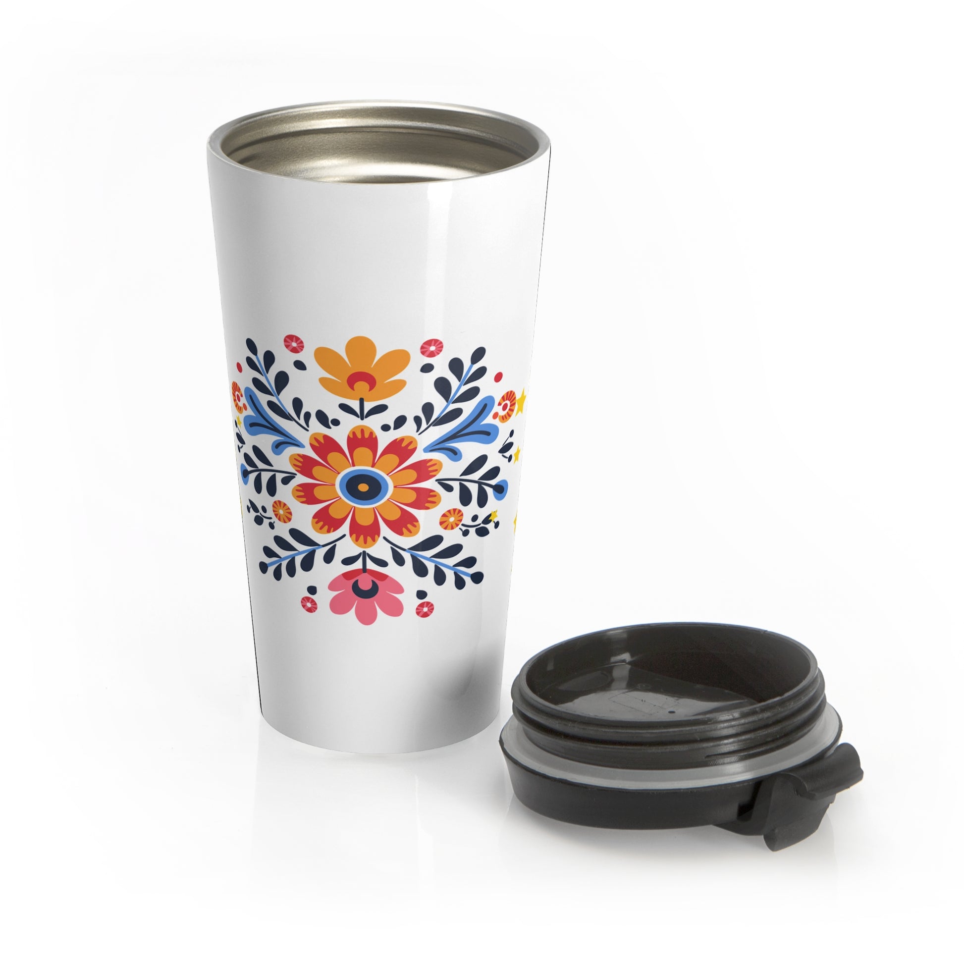 Celestial Bloom Travel Mug – Folk Floral Stainless Steel Tumbler