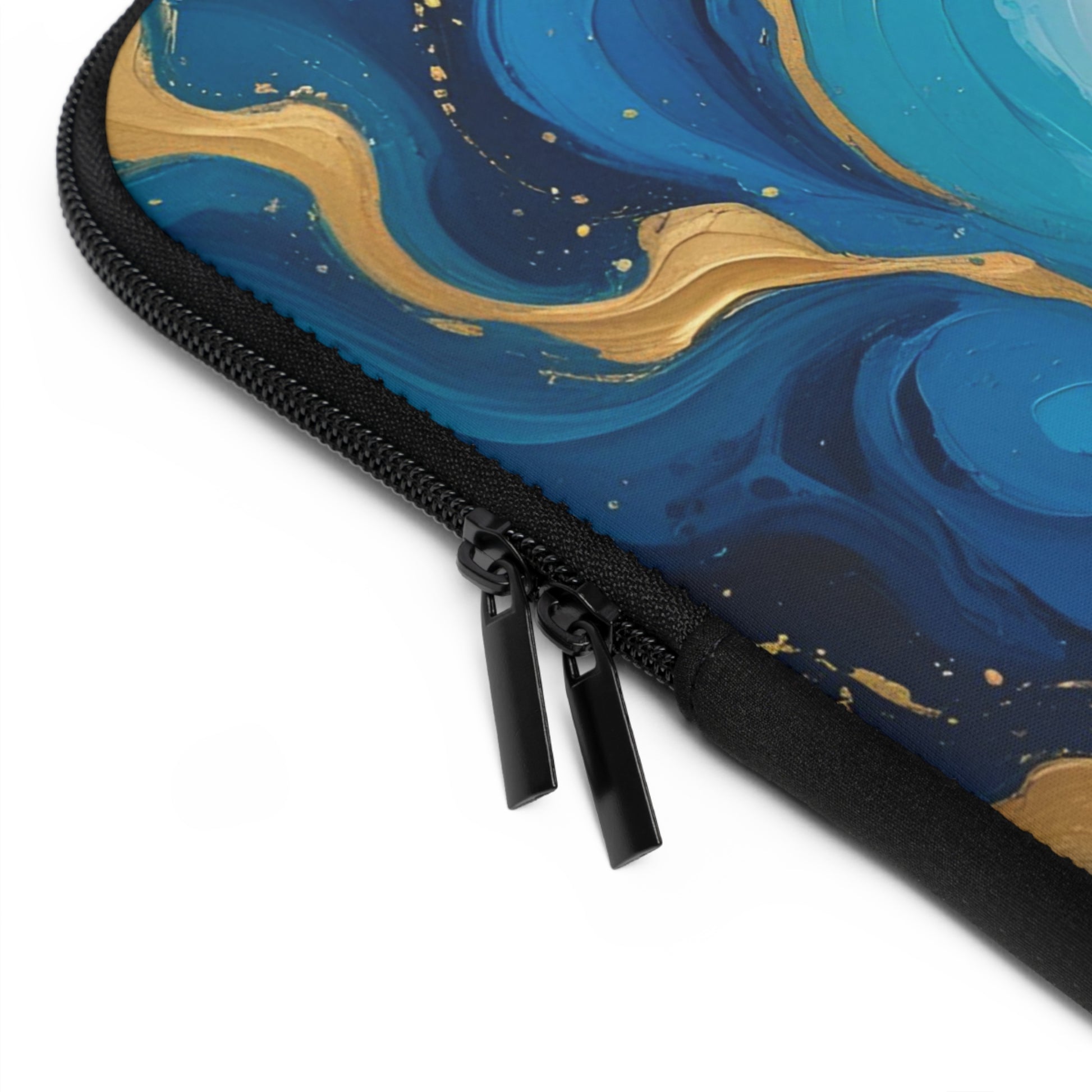 Tide Dreams Laptop Sleeve – Blue Gold Abstract Tech Cover