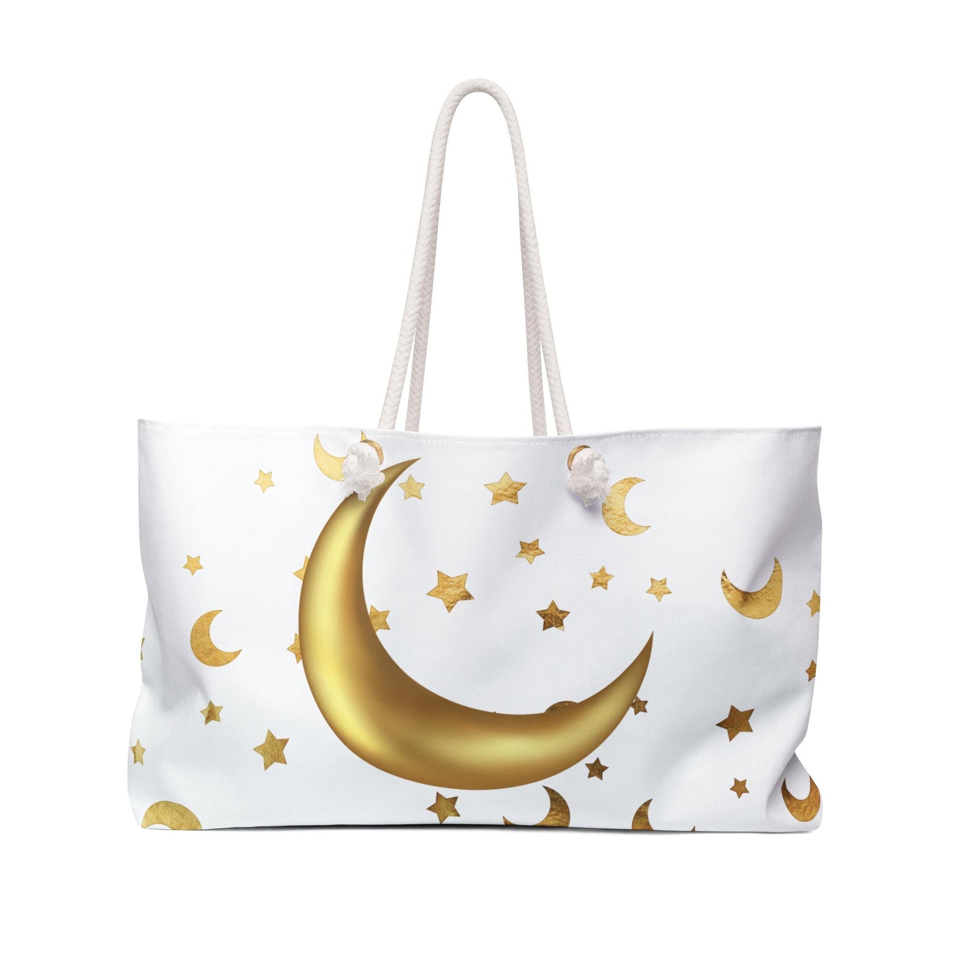 Celestial Weekender Bag - Moon & Stars Travel Tote, Boho Beach Bag, Weekend Getaway Essential, Stylish Overnight Bag, Cosmic Charm