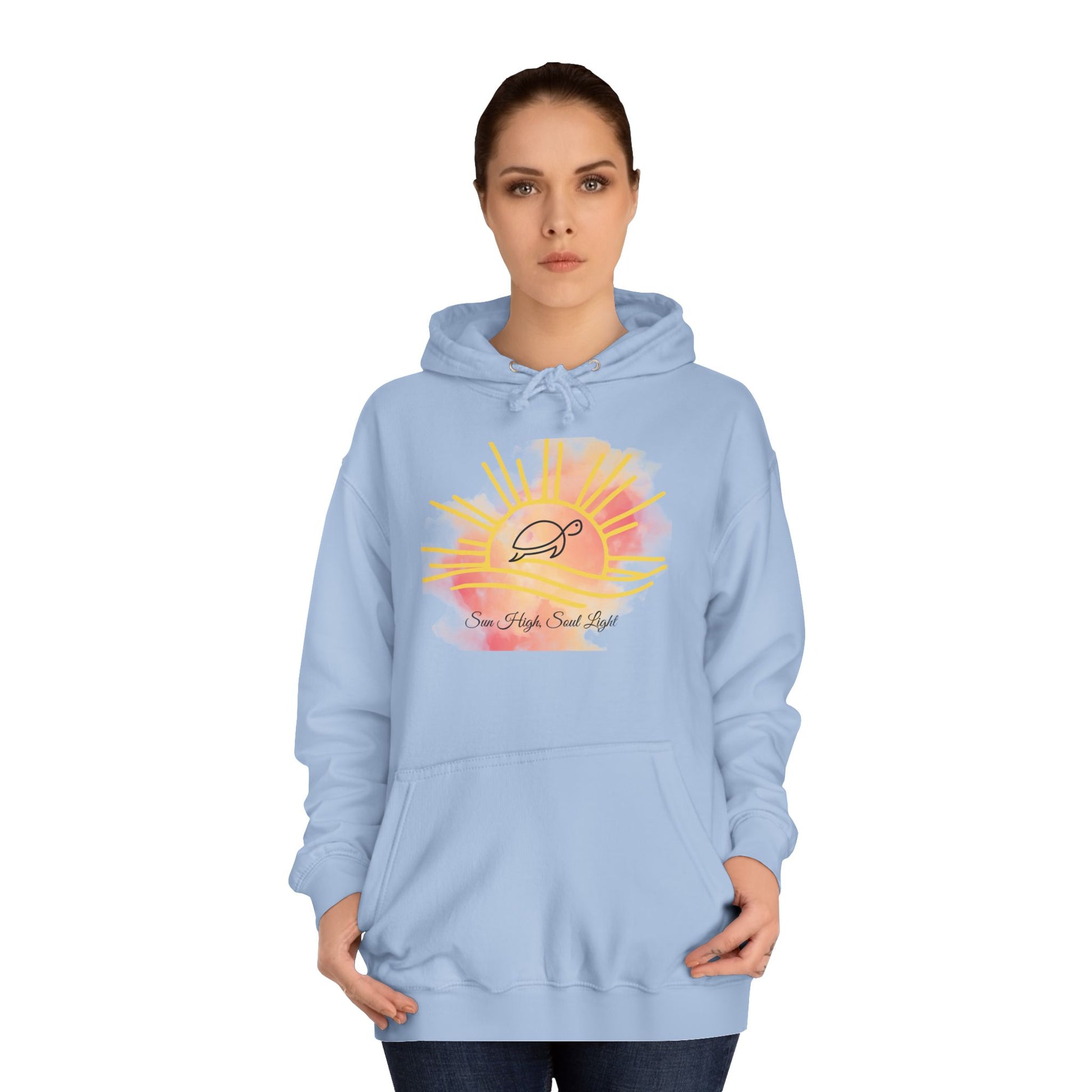 Sun High Soul Soft Hoodie – Watercolor Turtle & Sunrise Sweatshirt | Cozy Coastal Quote Hoodie
