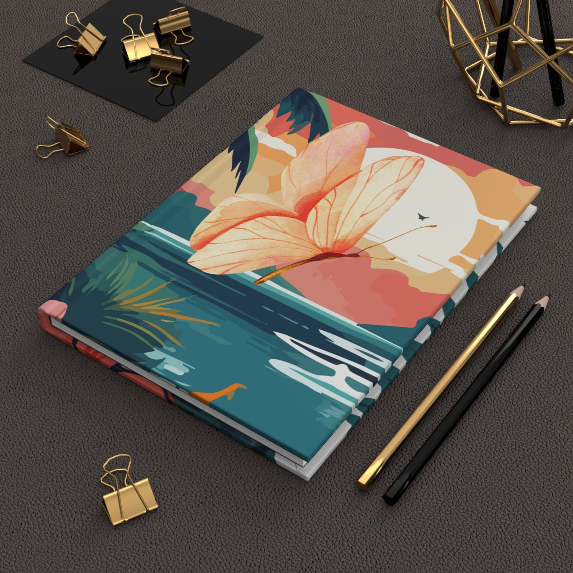 Tropical Butterfly Sunset Journal – Hardcover Matte Notebook | Coastal Dreamscape